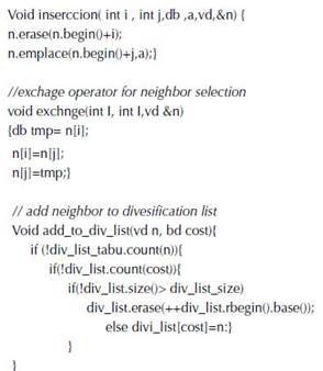 En esta fase final se reciben los datos generados por la metaheurística del algoritmo genético Chu-Beasley mejorado y se pasan como datos iniciales a la metaheurística búsqueda de tabú (TS) (Becerra y Alvarado, 2017); con esta técnica se pretende optimizar las rutas tanto en tiempo computacional, distancia y costo del recorrido, para ello se utilizan las estrategias de intensificación y diversificación (seudocódigo búsqueda de tabú) (Bodas, 2017). Posteriormente, estas nuevas rutas se toman como datos de entrada para la metaheurística de tabú en el código Ts_init_solu_input. Posteriormente se procede a ejecutar el código de tabú implementado en Dev c++ por los autores (ver código 4 de tabú).