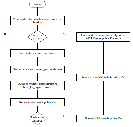 El algoritmo Chu-Beasley (1997) y el algoritmo genético (Guasmayan, 2014) tienen la opción de incluir nuevas fases de mejoramiento, mediante sus fases de selección, recombinación y mutación (Solarte, Castillo y Rodríguez, 2015) (ver diagrama de flujo en figura 1).