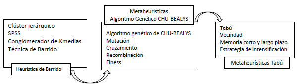 Clustering, sweep, genetic y tabu routing (CSGTR)