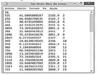 Como se mencionó anteriormente, la técnica de barrido parte de un punto inicial para generar una ruta preliminar. Mediante la implementación de la heurística de barrido se pretende clasificar los 144 puntos de recolección no solo por distancia, sino también por la capacidad de restricción del vehículo recolector, en este caso se obtiene una solución inicial del problema que luego será utilizado en la segunda fase. En la figura 4, se muestran los datos de algunos de los puntos de recolección de basura en ángulos y distancias polares.