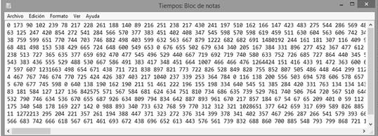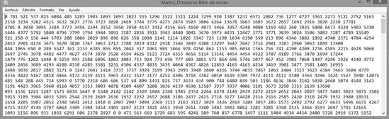 Las siete (7) rutas encontradas en la fase anterior fueron pasadas como población inicial al algoritmo genético de Chu-Beasley, además de las matrices de distancia y tiempos (de 144 × 144) generadas por Google Maps. En las figuras 8 y 9 se presenta un pantallazo de estas matrices.