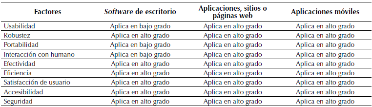 Usabilidad: hace referencia al grado de utilización del software para cumplir con los objetivos específicos planteados por el usuario.