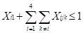 X131 +X142 +X143 +X144 +X242 +X243 +X244 +X342 +X343 +X344 +X442 +X443 +X444 ≤ 1.