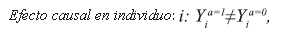 Donde E es la expectativa del promedio de Y en la población y a es la intervención.