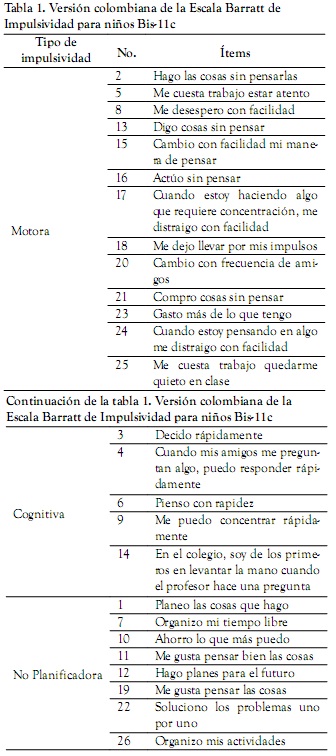Consideraciones y Reflexiones Acerca de la Versión Colombiana de la Escala Barratt de Impulsividad para Niños (BIS-11c)*