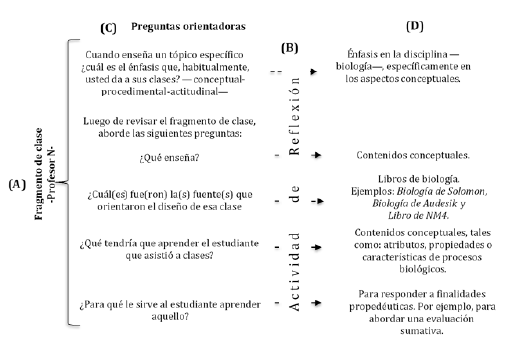 Figura 2 Estructura metodológica de una sesión de reflexión con profesores de biología en el marco de un PDP.