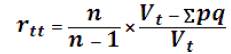 La varianza total de la prueba queda determinada por la siguiente formula: