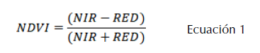 Dentro de los materiales utilizados para el prototipo, se optó por utilizar imágenes satelitales provenientes del programa Landsat, para generar el índice de vegetación de diferencia normalizada (conocida por sus siglas en inglés como NDVI). Según el Earth Observation System, programa de la NASA para la observación terrestre, el NDVI es una medición del estado de salud de las plantas (y la existencia de las mismas), basado en cómo las plantas reflejan luz a diferentes frecuencias (EOS Data Analytics, s.f.). En este caso, el NDVI permite conocer la existencia o no de combustible en el sector estudiado, considerando combustible la vegetación en general. Para la obtención de esta se utilizan la banda de reflectancia en el espectro rojo (RED) y la banda de reflectancia en el espectro cerca del infrarrojo (conocido también como near-infrared spectrum o NIR). La Ecuación 1 demuestra cómo el cálculo es aplicado, todo considerando que se trabaja con matrices numéricas asociadas a las propias imágenes satelitales.