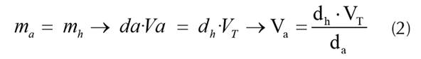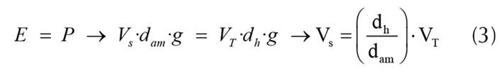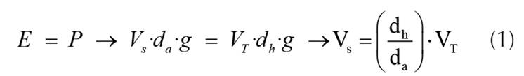 Introduciendo los datos experimentales en la ecuación 4 anterior (donde se ha sustituido dam por das = densidad del agua salada):