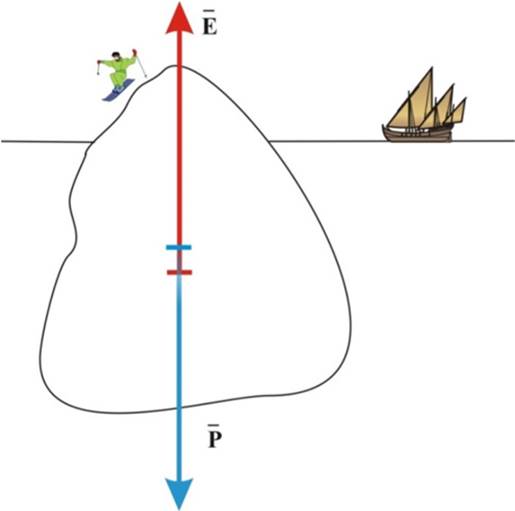 Por otra parte, al encontrarse el bloque de hielo en equilibrio, los módulos de la fuerza de empuje y de la fuerza peso , han de ser iguales (E = P). En la Figura 1, se han representado esquemáticamente ambas fuerzas.