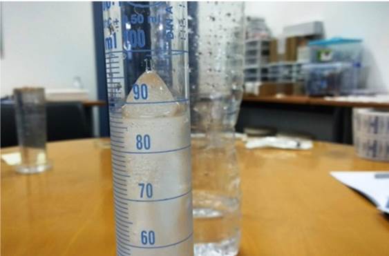 En la figura 2 siguiente se puede observar la probeta utilizada en un momento dado durante la fusión del hielo en su interior.