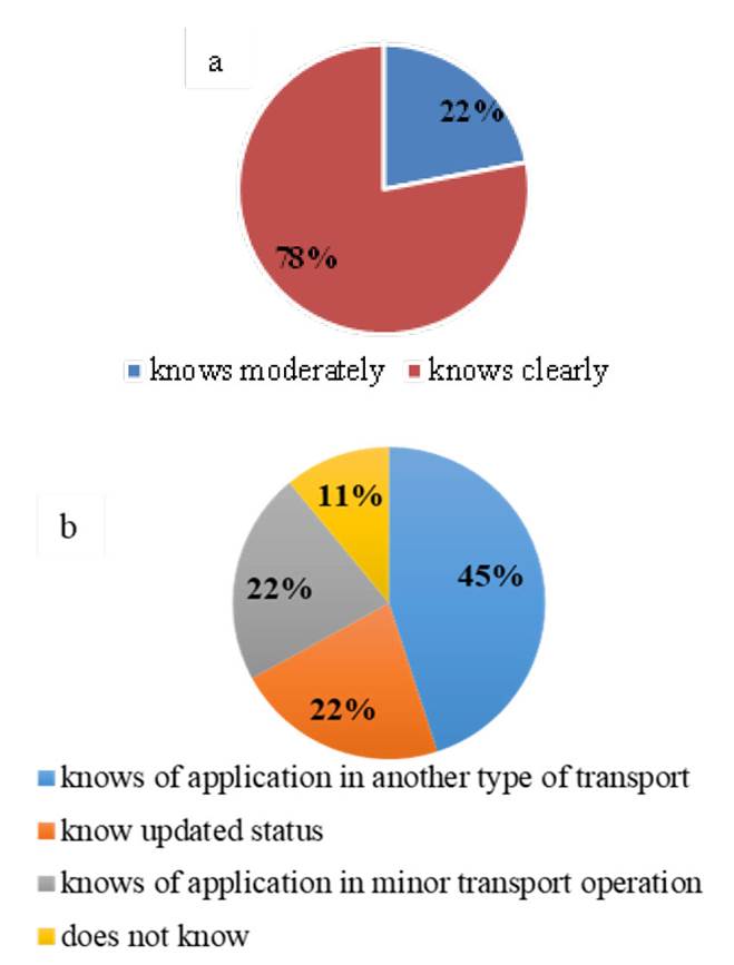 Fig. 1 Interviewees’ response to the following questions: a) What do you understand by electromobility? b) Do you know the current state of its use in load transport?
