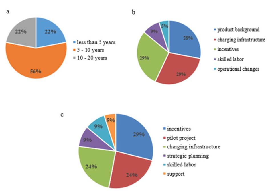 Fig. 3 Interviewees’ response to the following questions: a) In your experience, in what timeframe do you think this technology will be competitive with high-load diesel trucks and why? b) What factors do you think should exist in order to assess the implementation or incorporation of electric trucks in your company? c) Do you have specific proposals to drive the implementation of electric trucks in the short term and on a permanent basis?
