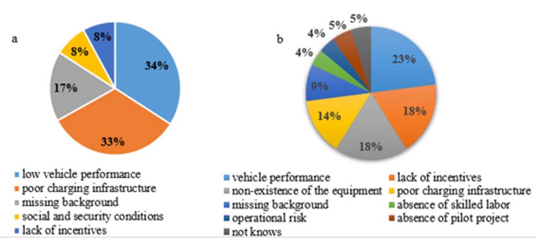Fig. 4 Interviewees’ response to the following questions: a) What kind of difficulty or risk could the implementation of this type of technology cause in the sector and in your organization? b) Why do you think electric trucks have not yet been introduced in Chilean forest transport and in your company?