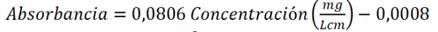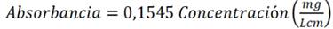 Para el caso del verde de metilo la regresión lineal obtenida a longitud de onda máxima = 631 nm fue