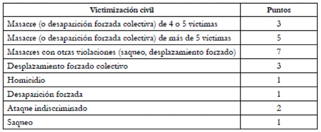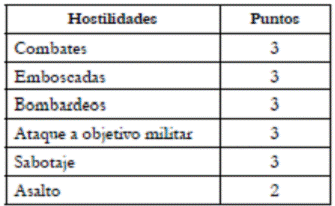 Una localidad obtiene un puntaje de 1 en disputa territorial basada en hostilidades cuando al menos dos bandos en confrontación llevan a cabo al menos 3 acciones de hostilidades en un periodo de un año.