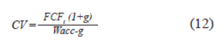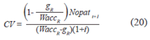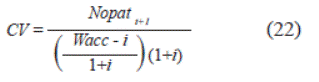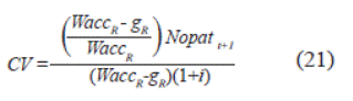 La nota técnica 1, al final del caso contiene el desarrollo analítico de esta ecuación.18 Este cálculo se basa en la propuesta de Stern (1974), quien indica que el período de ventaja competitiva tiende a agotarse en un horizonte de tiempo. Sin embargo, se debe tener en cuenta que en economías altamente inflacionarias, al denominador debe restarse el valor de la inflación esperada. Cuando la inflación es positiva se puede dar una estimación baja del valor real de la empresa, porque esto implicaría que el valor de los flujos de caja decrecerían a la tasa de inflación y, por tanto, ajustes adicionales pueden ser requeridos (Bradley & Jarrell, 2003).