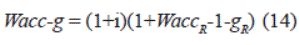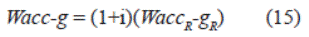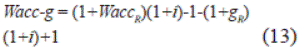La diferencia hallada entre los valores del capital propio según nuestros cálculos y el resultante de la transacción de las acciones privilegiadas debería corresponder al crecimiento esperado posterior a t+1, de acuerdo con las proyecciones de la empresa. Ese crecimiento implícito (g) se puede obtener despejándolo de la ecuación para cálculo del valor a continuidad: