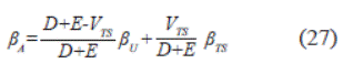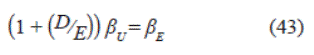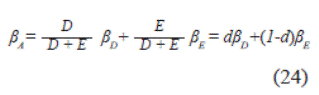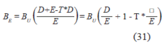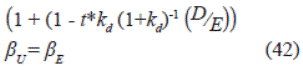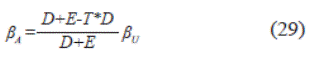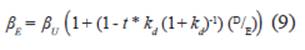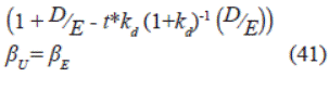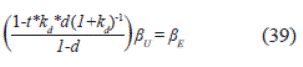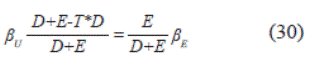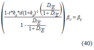 Como sabemos, el apalancamiento incrementa el nivel de rendimiento exigido por los inversionistas (KE), ante el incremento de la posibilidad de default y los costos de estrés financiero; por lo tanto, se cumple que KE>KU. La forma de llegar al KE es apalancando el BU por el nivel de D/E seleccionada para obtener un BE (Fernandez, 2006). La siguiente es la ecuación más utilizada para apalancar y desapalancar los betas (Hamada, 1972):