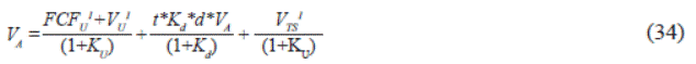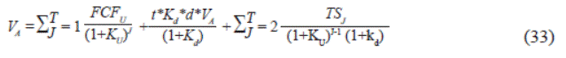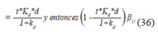 Donde t es la tasa de impuestos. Estos autores asumen deuda sin riesgo porque cuando el apalancamien-to se ajusta al final de cada periodo, el flujo de caja del primer periodo es libre de riesgo. En este caso, el beta de los activos apalancados es el promedio ponderado de BU y el beta del escudo fiscal libre de riesgo (BTS), el cual es cero. Si suponemos ajustes continuos de la estructura de capital para maximizar el valor de la empresa, entonces el BD tiende a cero y esta última ecuación puede ser usada. En la nota técnica 2 se puede ver el desarrollo analítico que sustenta esta conclusión.