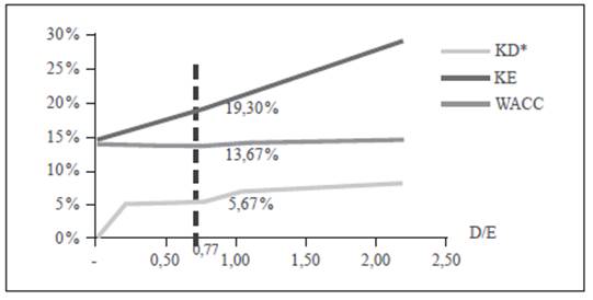 Para esos efectos, se utiliza el Capital Asset Pricing Model (CAPM) y el ranking sintético de cobertura con el propósito de estimar el costo de la deuda y determinar el apalancamiento óptimo que equilibra los beneficios y costos financieros marginales del endeudamiento, los cuales se relacionan con el incremento de las tasas de interés por parte de los proveedores de deuda, cuando perciben mayor probabilidad de no pago generada por una baja cobertura de intereses.1 Además, se evidencia que en la medida que aumenta el endeudamiento se incrementa el riesgo, y los inversionistas incrementarán sus expectativas de rendimiento. También, se denota que la estructura de capital óptima maximiza simultáneamente el valor de la firma y el precio de la participación de cada socio (acciones o participación societaria), a su vez que minimiza el costo promedio ponderado del capital.
