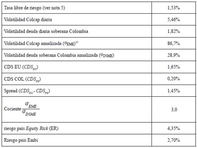 Algunos autores consideran que el CAPM es válido para cualquier economía; sin embargo, las características de reducido tamaño, baja liquidez e información imperfecta que se encuentran en el mercado colombiano implican la violación de los supuestos con los cuales fue concebido el modelo (costos de transacción mínimos, alta liquidez de todos los activos, acceso de inversionistas a la misma información e imposibilidad de encontrar activos infra o sobrevalorados en el mercado). Por esta razón, usamos tasas de referencia de mercados desarrollados.