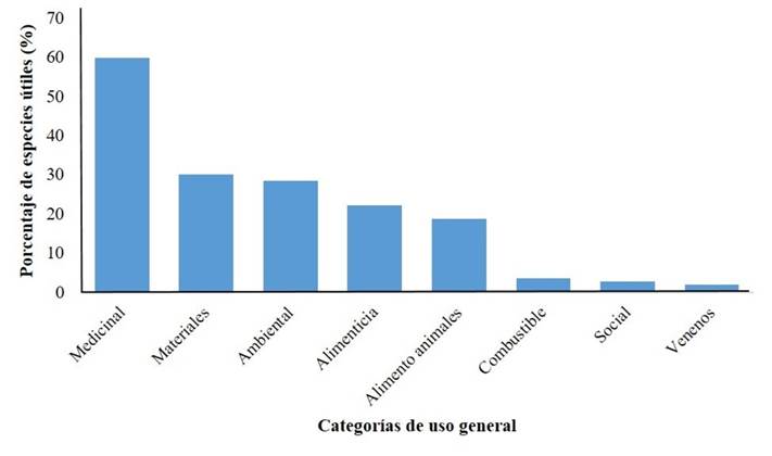 | Medicinal | Reportadas como medicinales, repelente, purgante (purgativo) |