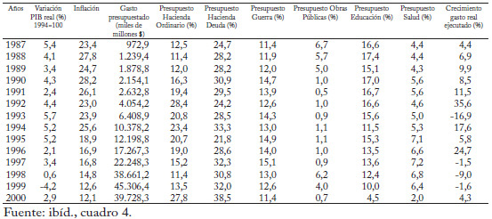 Políticas presupuestales y gasto ejecutado en períodos sobresalientes de manejo macroeconómico en el siglo XX