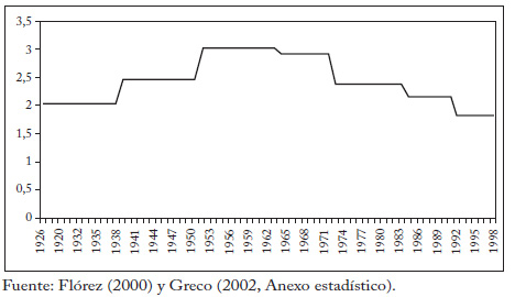 El peso relativo de los ingresos ordinarios de economía privada à la Wagner no es desdeñable si se juzga en perspectiva histórica. En cuanto al gobierno nacional, sus ingresos por bienes y servicios nacionales representaban la tercera parte de los ingresos totales en los años veinte; en los treinta, su participación se redujo sensiblemente, y en 1940 apenas frisaba el 10%; de ahí en adelante se estabilizó en un nivel cercano al 5%10. Esos ingresos eran mayores con respecto al ingreso de los municipios: desde finales de los veinte hasta entrados los cincuenta, fueron en promedio del 35%.