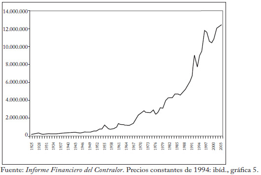Gastos de funcionamiento del gobierno nacional, 1925-2003