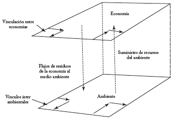 El siguiente diagrama muestra la representación de las interacciones y vínculos existentes entre la economía y el ambiente y los principios para una transición de una economía lineal a una economía circular, (Pearce & Turner 1990).