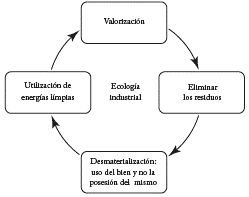 Erkman (2001), por su parte, define los cuatro principios que deben guiar la reorganización del sistema industrial para que evolucione hacia un modo de funcionamiento sostenible a largo plazo y compatible con la Biosfera: