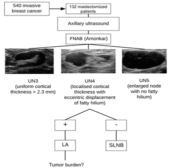 Thus, the objective of the present study is to demonstrate the ability of FNAB to detect non-metastatic or micrometastatic SLNs (cN0) in patients with indications for mastectomy and avoid LA based on evidence from the AMAROS trial.