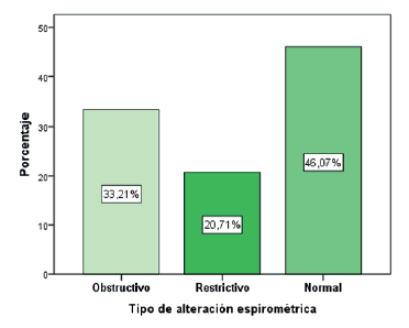 En relación con el diagnóstico funcional según espirometría, inicialmente se analizó el tipo de alteración espirométrica obtenida en los pacientes objeto de estudio (ver tabla 3).
