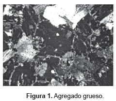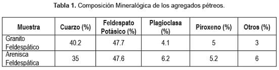 En los tratamientos tanto el agregado grueso como el fino utilizado en el presente trabajo proviene de canteras cercanas a la ciudad de Olavarría, provincia de Buenos Aires. Del análisis petrográfico de ambos se advierte que el agregado grueso corresponde a un granito feldespático y el agregado fino es una arenisca feldespática (tabla 1). En la figura 1 y 2 se pueden apreciar el agregado grueso y el fino.