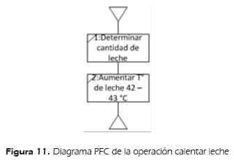 Operaciones y Fases: Dentro del procedimiento de unidad adecuar leche, se puede definir la acción y sus respectivas fases así: Calentar Leche, la cual tiene dos fases: 1) Determinar leche por utilizar según tamaño de batch. 2) Aumentar temperatura de la leche a 42 - 43°C.