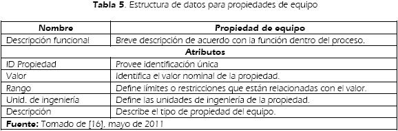 Para definir los requerimientos de cada equipo, se debe realizar inicialmente una instancia del equipo, como se ve en la Tabla 4 y después, una instancia de la(s) propiedad(es) del mismo como en la Tabla 5.