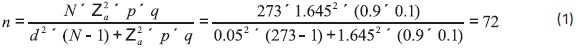 Con una población de 273 empresas (N) se requirió entrevistar a 72 (n), con lo que se obtuvo un error estándar menor de 0,05 (d), con un nivel de confianza del 90 % (p). Utilizando muestreo aleatorio simple, se estableció el tamaño de la muestra y se conoció el tamaño de la población [13]. Se utilizó el tamaño muestral estratificado para obtener la población objeto de estudio por tamaño de empresa.