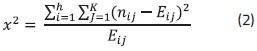 Para realizar el análisis estadístico de los resultados se hizo necesario estudiar la distribución conjunta o tabla de contingencia, con el fin de poder determinar la relación de dependencia o independencia entre las variables cualitativas. Se realizan tablas de contingencia para observar la relación entre variables, utilizando el contraste estadístico basado en el c2 (chi-cuadrado).