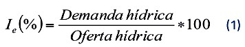 El Índice de escasez representa la relación porcentual entre la oferta y la demanda hídrica de una zona específica Ie(%), como se indica en la Ecuación 1.