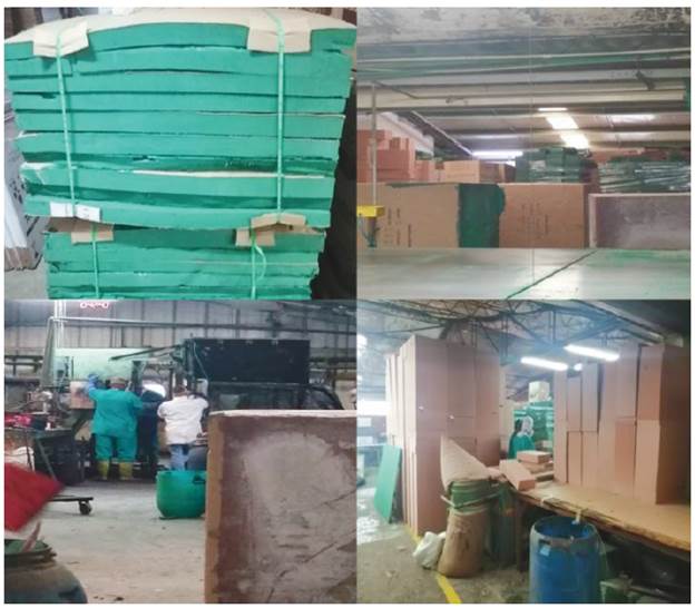 Es una organización líder en el mercado colombiano en la producción y comercialización de espumas florales, agrícolas y absorbentes industriales a partir de tecnología fenólica. Esta empresa lleva 34 años en operación en el sector de Acopi-Yumbo, y cuenta con 39 empleados, que se distribuyen en las áreas administrativas y operativas. Su portafolio cuenta con 49 productos, lo que representa una producción mensual de 4772 kg de espuma en sus diferentes presentaciones. A continuación, la figura 3 muestra las instalaciones de la pyme asociada a la producción de espumas fenólicas.