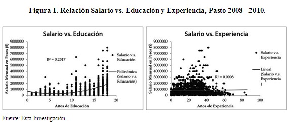 Los datos indican que de manera significativa estadísticamente, un año más de educación incrementa aproximadamente en 5,11% el ingreso de los pastusos. Este resultado es prácticamente invariable ante diferentes controles como ser casado, ser oriundo de Pasto, estar ocupado o pertenecer al género femenino. Cuando los datos se analizan por niveles de estudio, se encuentra que tener primaria completa reduce en aproximadamente un 12,3% el salario promedio mensual de las personas, mientras que tener estudios profesionales de pregrado o postgrado lo incrementa en un 34,7%. Asimismo, los datos reafirman la brecha salarial entre hombres y mujeres, dónde éstas devengan un 37,9% menos que los hombres, ratificando los datos de la Red ORMET en el 2013.