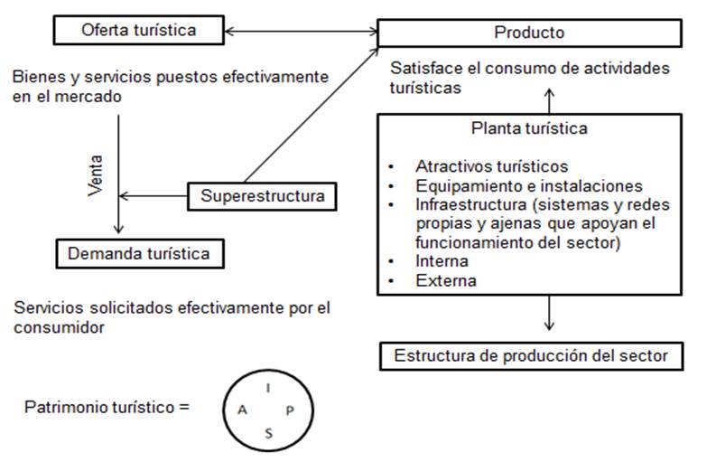 Como sucede con muchos fenómenos societarios, no existe una definición universalmente aceptada sobre el turismo, sino que son múltiples las interpretaciones epistemológicas sobre el término, por lo que se plantean aproximaciones al concepto que varían de acuerdo con la disciplina desde la que se aborda. Según la Organización Mundial del Turismo, se trata de “un fenómeno social, cultural y económico relacionado con el movimiento de las personas a lugares que se encuentran fuera de su lugar de residencia habitual por motivos personales o de negocios/profesionales” (Organización Mundial del Turismo, 2017, p. 1). Considerando la gran cantidad de elementos que intervienen en su desarrollo, se aborda como un modelo sistémico, según la relación oferta-demanda, representado por Boullón mediante la Figura 1.