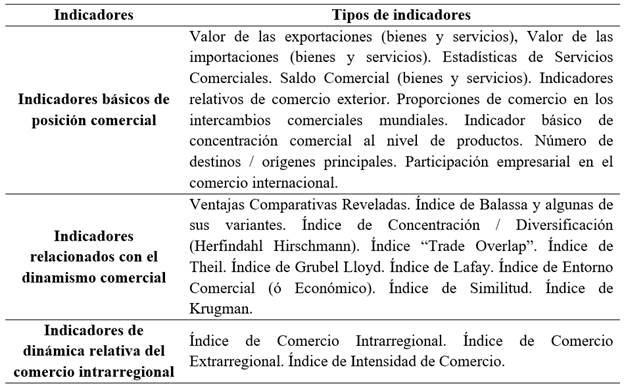 Algunos autores en América Latina han desarrollado diversos análisis sobre este tema, sin embargo, el principal referente teórico de esta investigación ha sido el desarrollado por la Comisión Económica para América Latina (CEPAL) titulado “Indicadores de comercio exterior y política comercial: mediciones de posición y dinamismo comercial” donde se han desarrollado una serie de indicadores con el fin de medir la dinámica comercial de una región o un país.