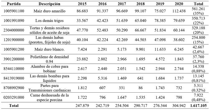 Los capítulos arancelarios donde se presenta una mayor tendencia importadora son los 12 (Semillas y frutos oleaginosos; semilla) y 23 (Residuos y desperdicios de la industria), en el periodo de análisis.