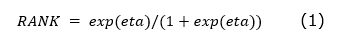 La salida muestra los resultados de ajustar un modelo de regresión logística para describir la relación entre RANK y 9 variables independientes. La ecuación del modelo ajustado se presenta en las ecuaciones 1 y 2.