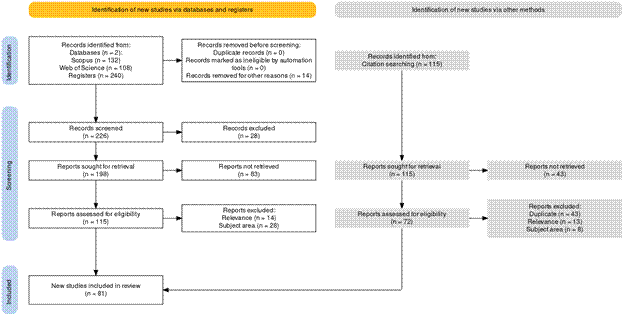 Siguiendo lo establecido en la declaración PRISMA 2020 (Haddaway et al., 2022), con el desarrollo de la primera fase metodológica, se seleccionaron un total de 81 documentos -que cumplieron con todos los criterios de inclusión y exclusión-, a partir de los cuales se determinará la evolución y la importancia de los estudios relacionados con la perdurabilidad empresarial de los emprendimientos sociales, como también, se identificaron las principales redes de colaboración a nivel mundial sobre esta área de conocimiento.