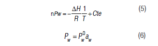 Where Pw corresponds to the water vapor partial pressure in equilibrium with the material at a determined temperature, corresponds to the water vapor pressure at a defined temperature for each product, and aw corresponds to the water activity.