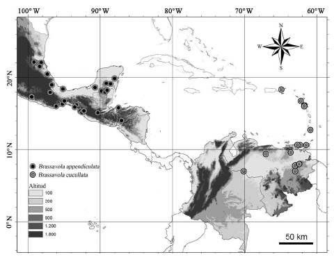 Comentarios taxonómicos. Esta especie ha sido tradicionalmente considerada bajo el nombre Brassavola cucullata (L.) R. Br., sin embargo, luego de la revisión taxonómica aquí presentada se esclarece que el nombre Brassavola cucullata, descrito originalmente por Plumier (1703), corresponde a las poblaciones morfológicamente diferentes provenientes de las Antillas. El nombre Brassavola appendiculata A. Rich. & Galeotti, corresponde a las plantas distribuídas desde el Norte México hasta Nicaragua.