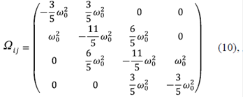 es la frecuencia natural de oscilación del sistema. Haciendo uso de la representación matricial, las ecuaciones de movimiento pueden escribirse como: